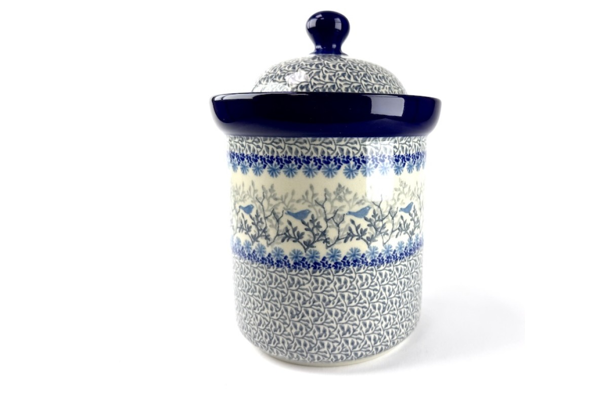 105 Bunzlau Voorraadpot 1083X 0,5 LiterLet op! geen vogeltje te zien , die zijn ze vergetenBlijft handwerk :-)Voorraadpot voor kruiden, zoals laurier, kruidnagels etc..