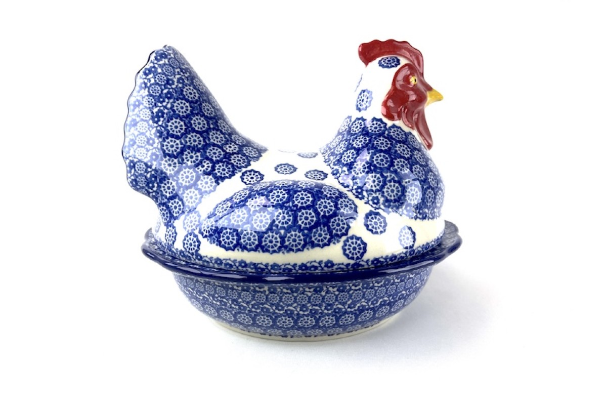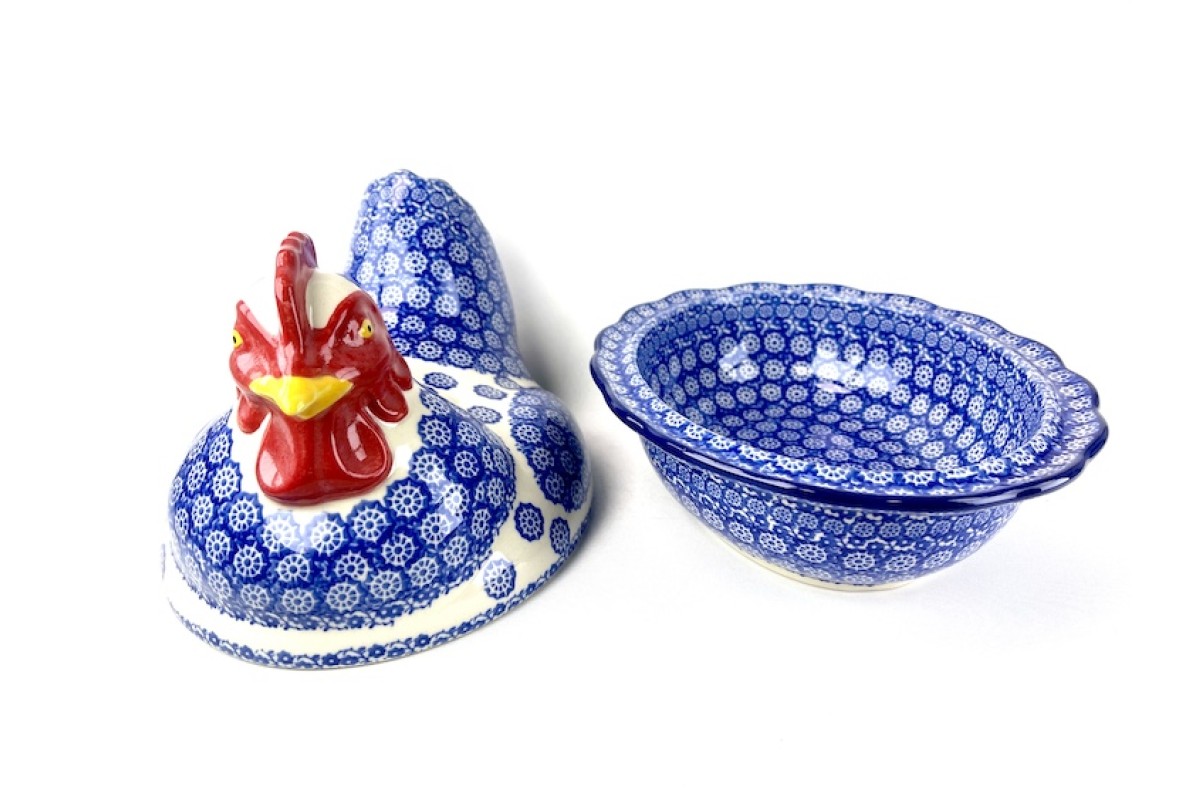 D43 Bunzlau Kip - dekschaal 2273XOvenschaalPrachtige dekschaal, staat sfeervol op tafel en op het aanrecht.Inhoud geschikt voor ongeveer 12 eierenDealerprijs: 169,95ruim 40% korting!..