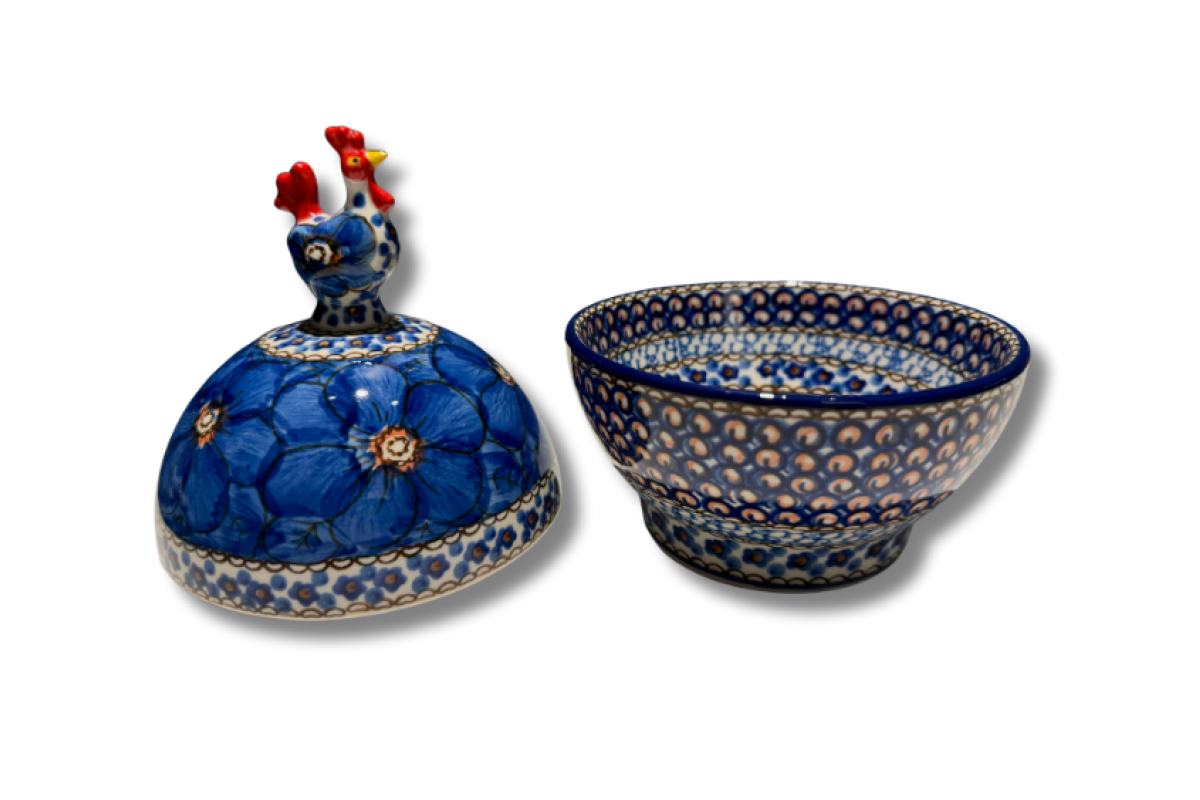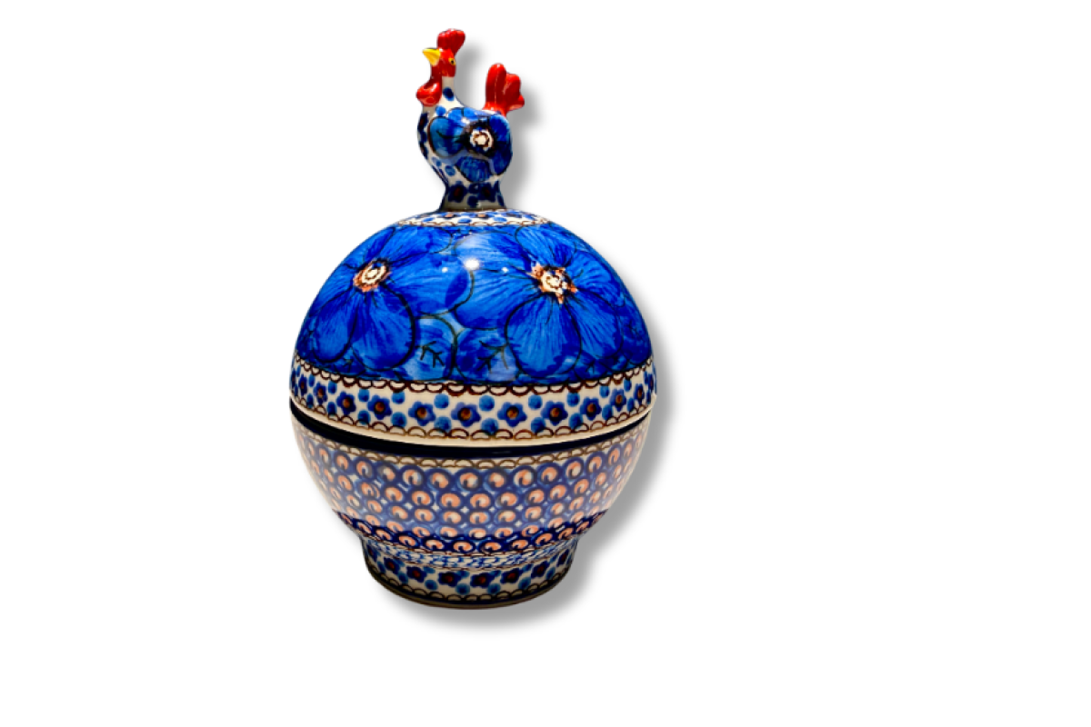 Met een sierlijk kipje op het deksel