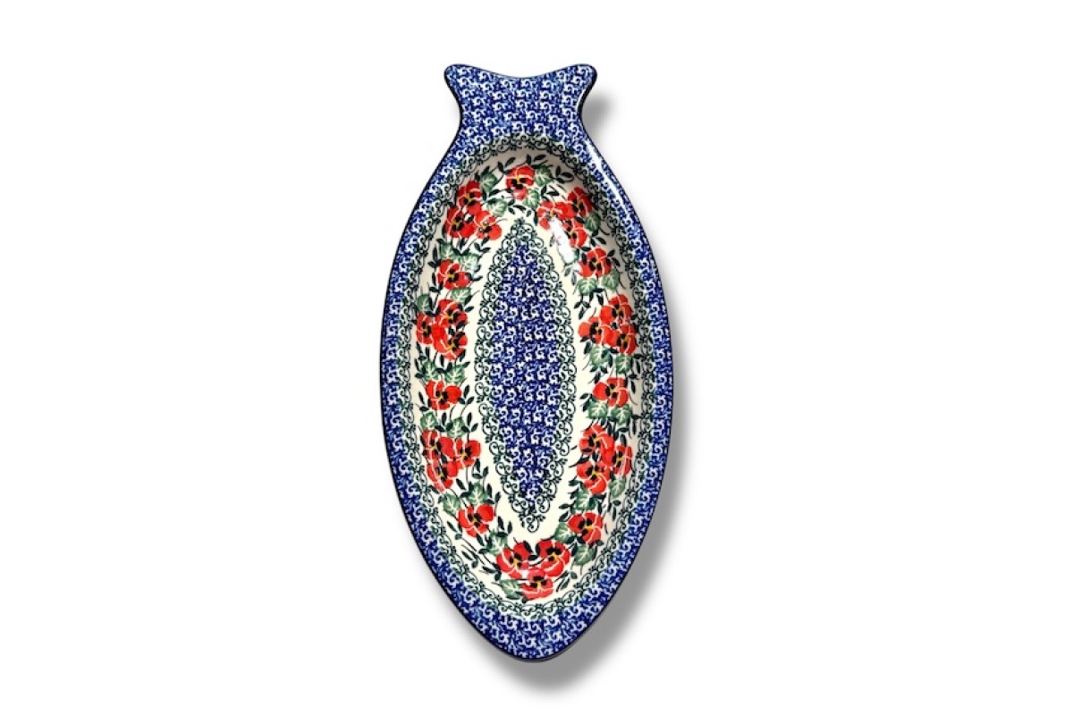 D74 Bunzlau ovale Serveerschaal 30x14,5cm 2415X D74Mooi bordje om forel/ stukje zalm op te serveren en leuk voor vishapjes..